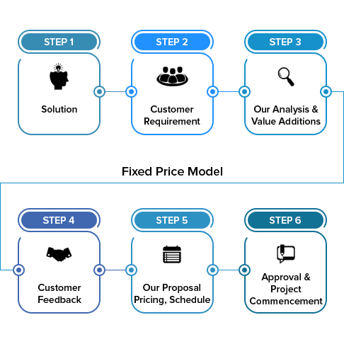 Software Projects that are taken up around a fixed budget, timeframe and requirements are referred to as Fixed Price Projects. Small or medium level projects are best suited types of project for this model where effective communication with feedbacks, ideas and suggestion between the client and the company is must. It's a win-win situation for both the client as well as the company as it helps to achieve high quality solution on time and within budget.